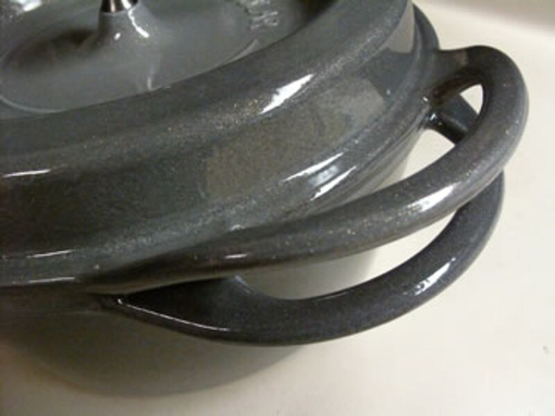 ハンドルの形状は大きく握りやすく、重い鋳物ホーロー鍋を感じさせない持ちやすさや洗いやすさが特長だ。