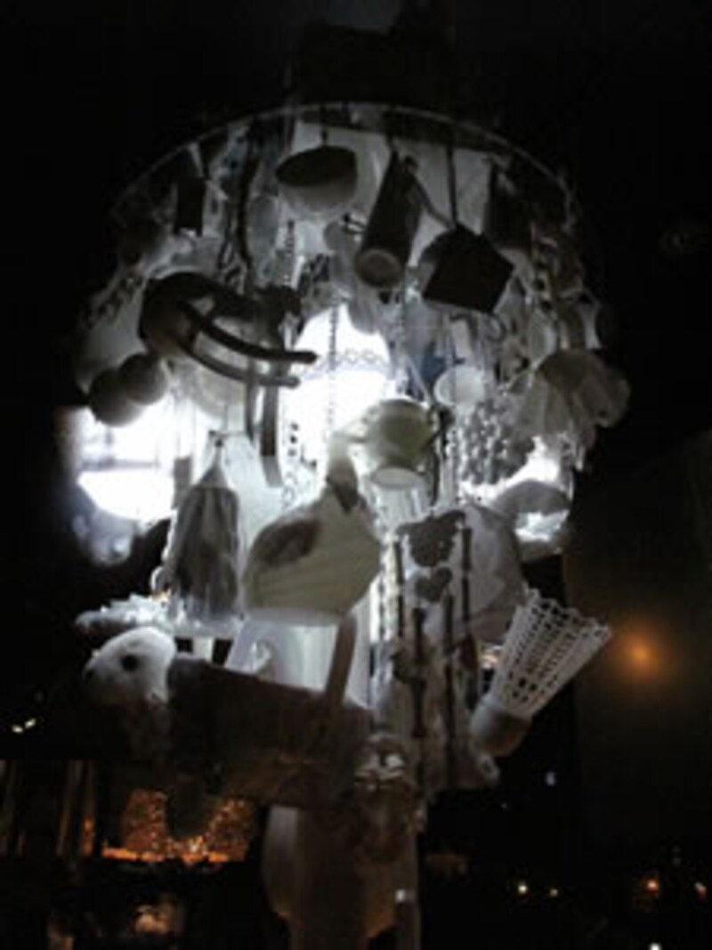 これが「WHITE」と名付けられたシャンデリア。身の回りにありそうな様々なものが一塊となってシャンデリアを形作っている。見飽きないが、あまり見続けていると首が痛くなる。非常に面白いデザインだ。