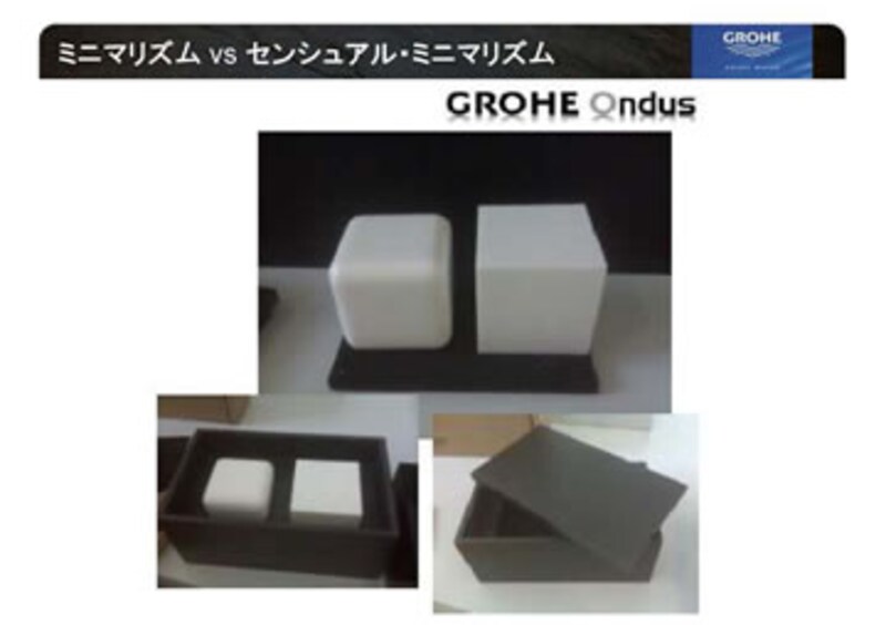 今年顕著に見られた水栓金具のトレンドは、徹底した「ミニマリズムデザイン」と、エルゴノミックな曲線を生かし感性訴求力を高めた「センシュアル・ミニマリズムデザイン」とに2分される。