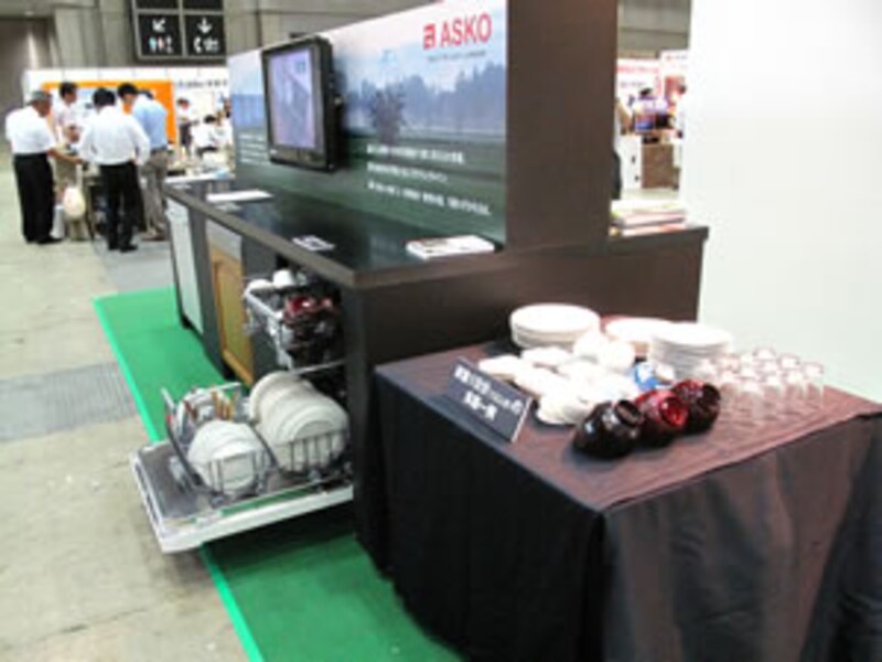 ツナシマ商事はスウェーデンASKO社の食器洗い機と洗濯機、乾燥機を出展。「日本のキッチンライフを60cm巾の食器洗い機が変える!!」というキャッチコピーにうたうように、4人家族一日分の食器を夜の間に一度に洗い上げる容量、洗浄力、乾燥力は今までの45cm巾では満足できなかったユーザーへの訴求力が関心を集めていた。
