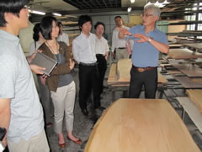 次の訪問先は、フローリング材で有名な昭和6年創業の細田木材工業。インテリア材以外にもブラジル産の「イペ」を使ったウッドデッキ事業にも乗り出している。