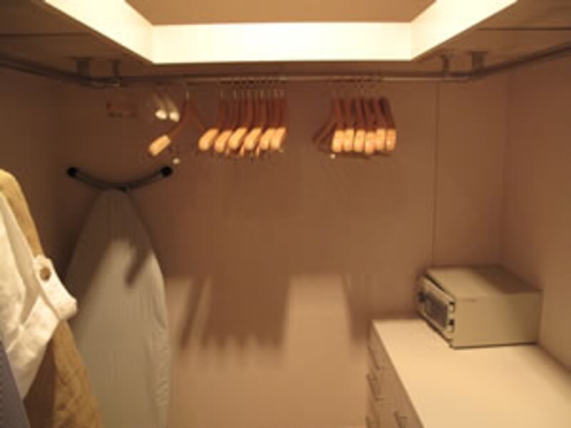 ベッドルームに隣接するウォークイン・クロゼットには、セーフティボックス、スチームアイロン、アイロン台などが完備している。