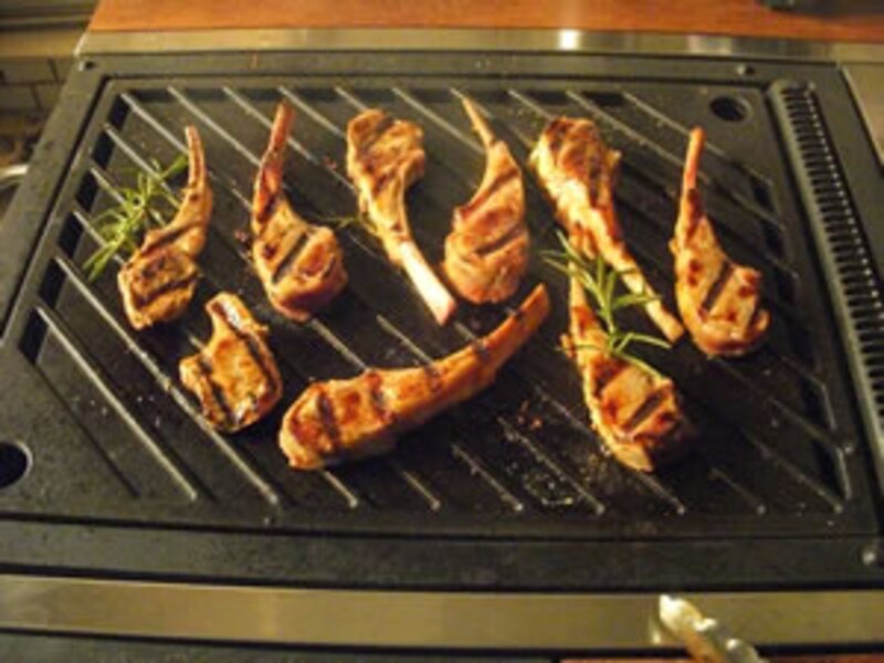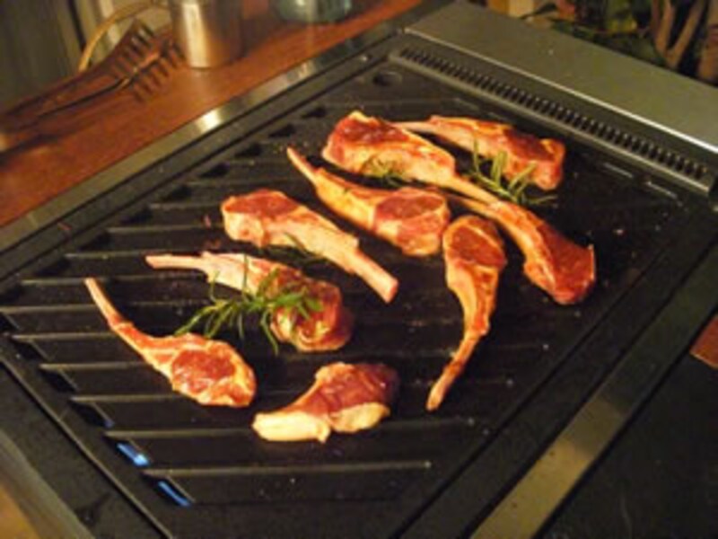 続いて特製ソースに浸けておいたラムチョップを焼く。