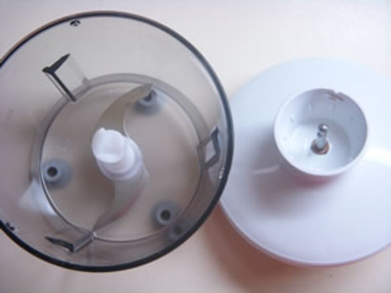 「食材を「刻む、混ぜる」ユニバーサルカッターを使うと、肉、硬いチーズ、ハーブ、果物、ナッツなどの粉砕、切断、野菜のみじん切りなどができ、ハンバーグ、つみれ、ディップなどを作るのに適しています。一回の食材投入量は約100グラムが目安です。