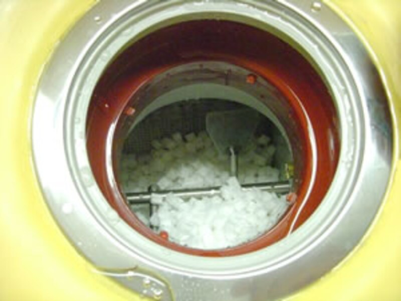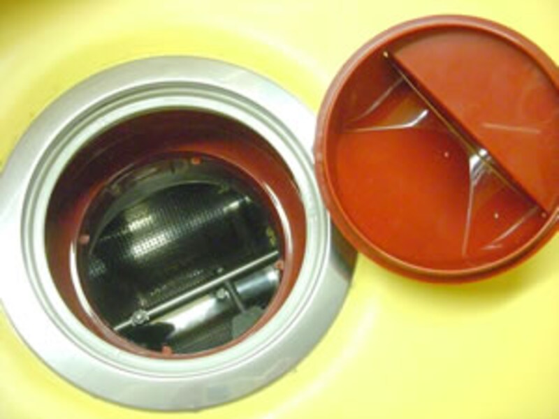 バイオスター投入前の本体を上からのぞいたところ。ステンレス製の本体は回転翼にあわせたアールがつき、ごみが縁に残りにくい形状となったのがわかる。