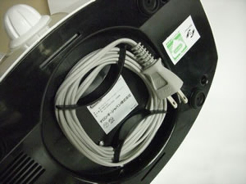 本体底面に,電源ケーブルの巻取り機構がある。
