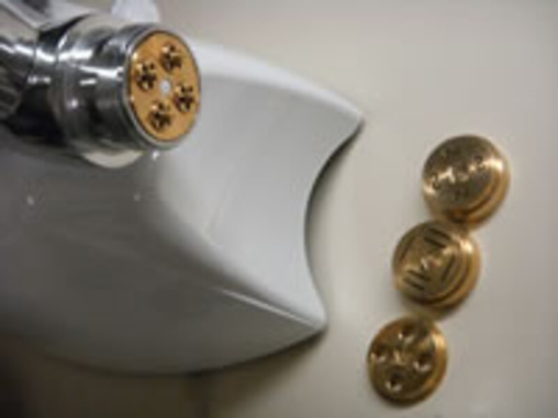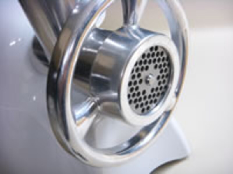 2:大中小の3種類のミンサープレートから,目的に応じて選びリングナットで固定します。