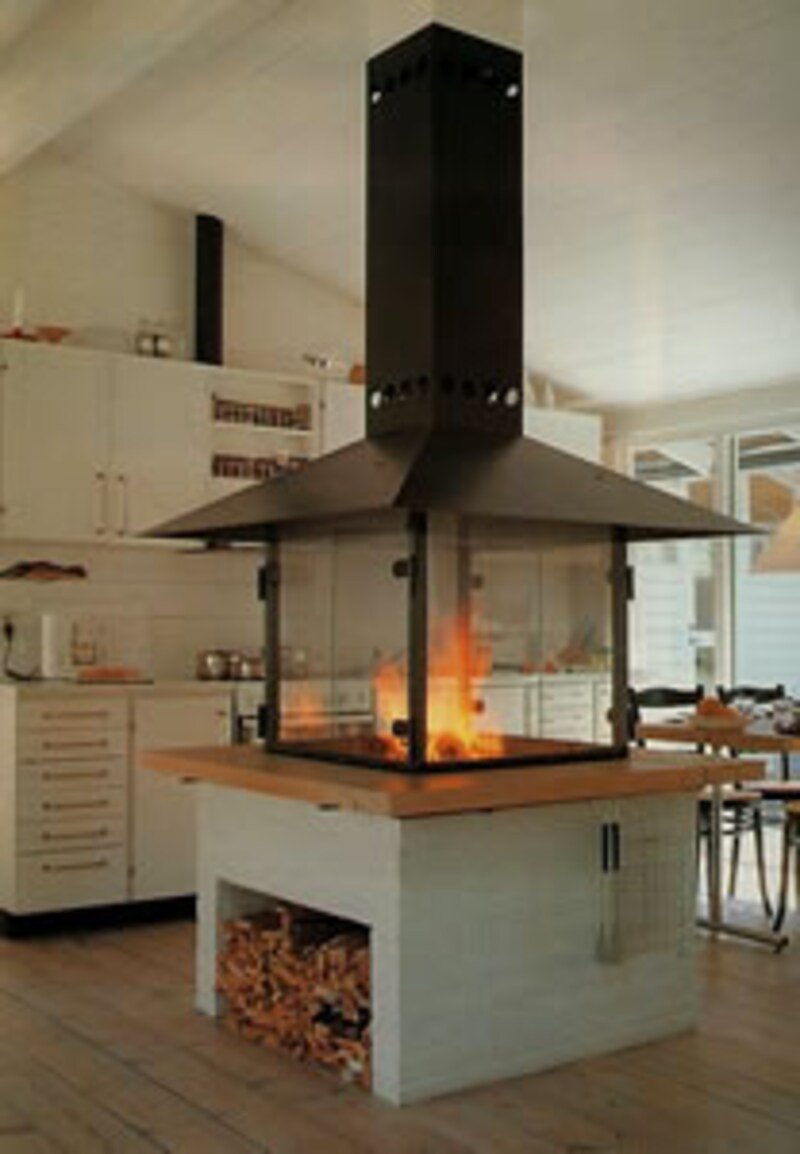 ◆1993年発行のTERENCE CONRANのKITCHEN BOOKが取り上げたアイランドキッチンは、薪を燃やす裸火のファイアプレースがレイアウトされています。このような裸火を楽しみながら加熱調理ができるようになるのは私の考える理想のキッチンのひとつですが、いろいろな法規制もあるため,今だに実現していません。