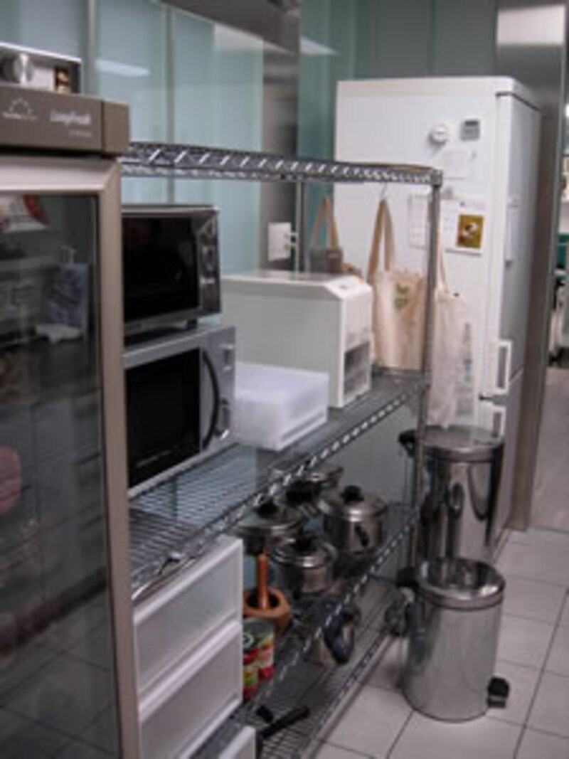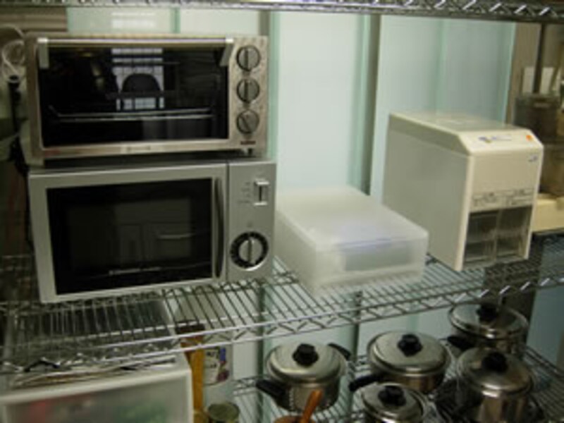 上段にはDelongiのオーブンとElectroluxの電子レンジ,精米機が並ぶ。