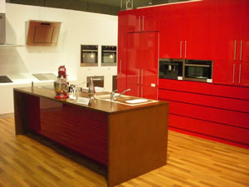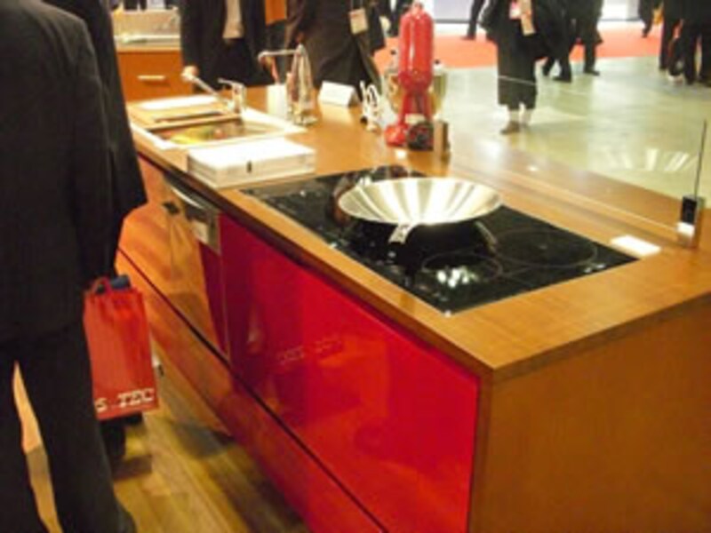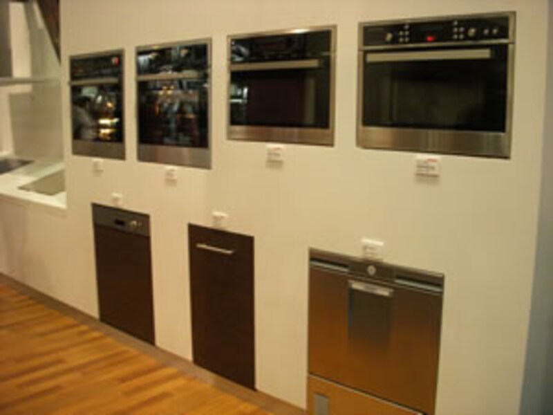 今年2月にオープンしたデザイナーズキッチンスタジオで輸入販売を開始したドイツ「Kuppersbusch(クッパースブッシュ)」の家庭用調理家電を組込んだオリジナルのシステムキッチンを併せて展示している。