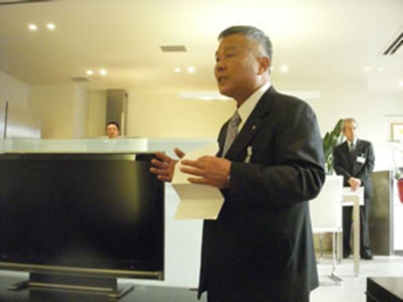 プレス発表に先立ち、尾崎社長から北沢産業の生い立ちと、今回のプロジェクトにかける意気込みが説明された。