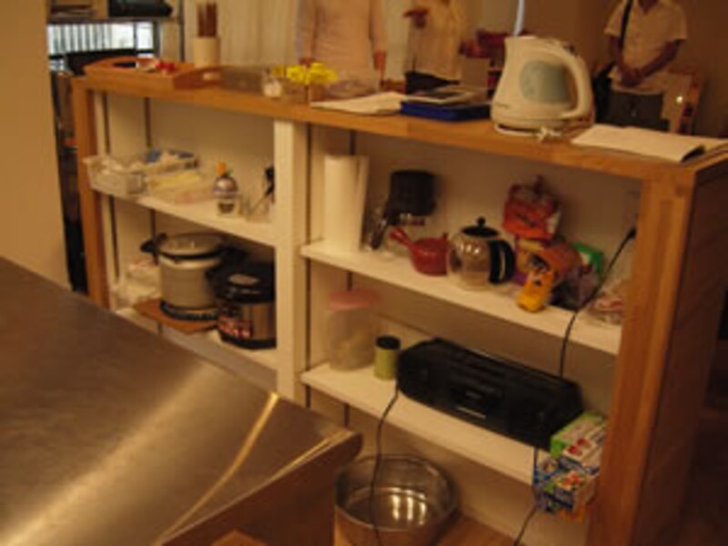キッチンとダイニングの間のハッチには、生活を感じさせるいろんなものが溢れはじめている。