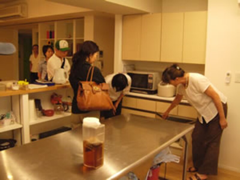 今回の見学会は、企画設計監理を担当した(株)都市デザインシステムの主催で開かれたもので、20名近い見学者は新しい集合住宅の施設に興味津々、関心の高さがうかがえる。