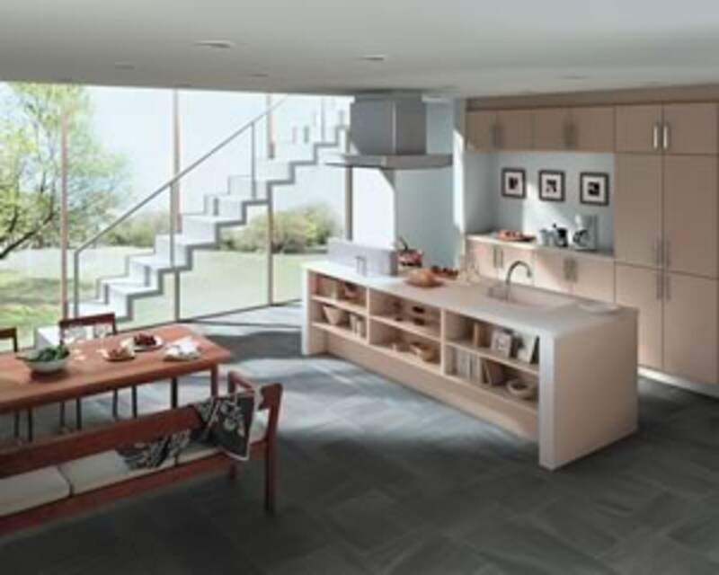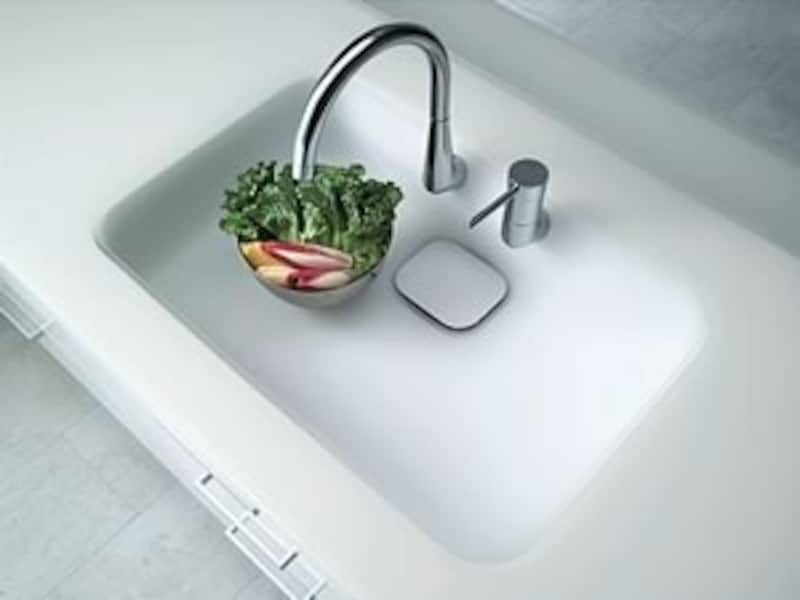 エポキシ樹脂製のシンクは、カウンターと一体化されているため手入れがしやすく、やさしくソフトな質感が、新しいキッチンを快適空間に演出してくれます。