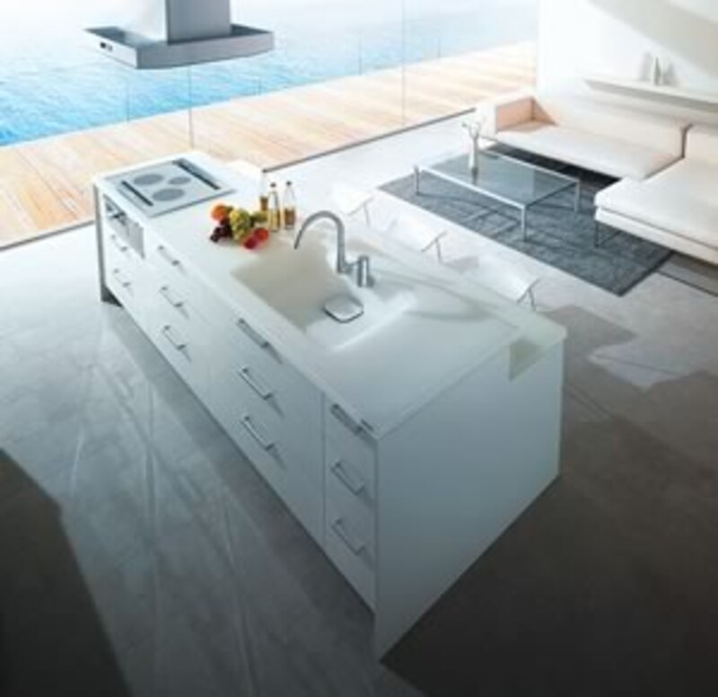 エポキシ樹脂製のシンクは、カウンターと一体化されているため手入れがしやすく、やさしくソフトな質感が、新しいキッチンを快適空間に演出してくれます。