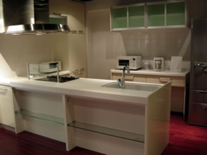 残念ながらキッチンの展示は一カ所だけ。他の商品と比べると、何となく力の入れ方に差を感じるのはどうしてだろう?