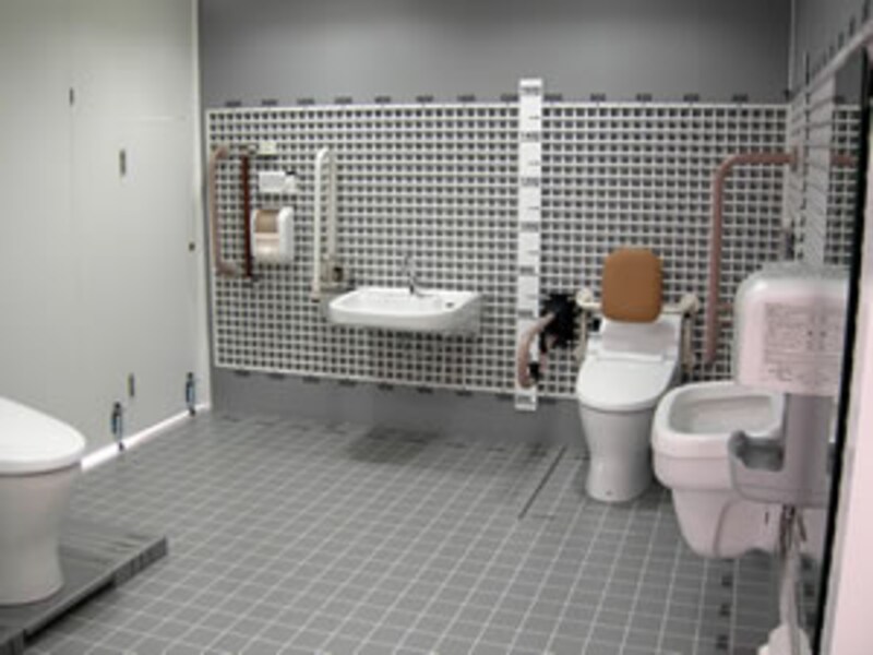 力を入れた展示となったのが、このユニバーサルデザイン検証コーナー。最適寸法の検証が電動床や壁で確認できる。