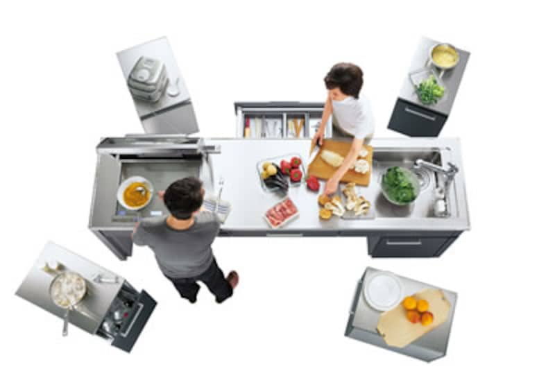 キッチンが生活の中で大切な空間であるとの認識が高まり、家族が揃ってキッチン作業を楽しめたり、ホームパーティの舞台装置の中心となって人々のコミュニケーションを生み出すニーズがますます高まりつつあります。その結果、キッチン空間とダイニング・リビング空間とのボーダレス化がすすみ、今やオープンスタイルのアイランドキッチンがキッチン計画の主流プランとまでいわれるようになってきました。