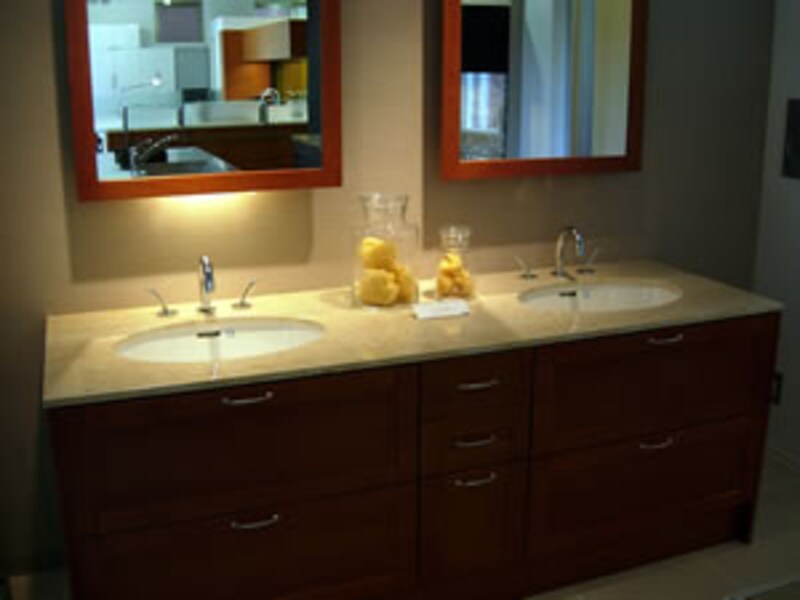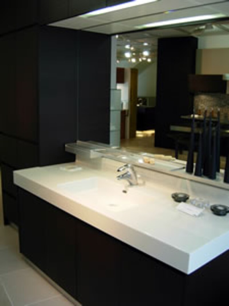 このフロアにはキッチン以外にも洗面化粧台の展示もある。