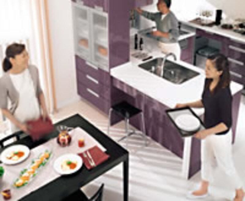 今年2月1日から発売されたフラット対面型はキッチン空間の広がりとダイニング側からの作業性を高めるなど、今までのキュイジアA型の作業性の良さという特徴に、テーブル感覚の参加型キッチンの良さを両立させたものです。