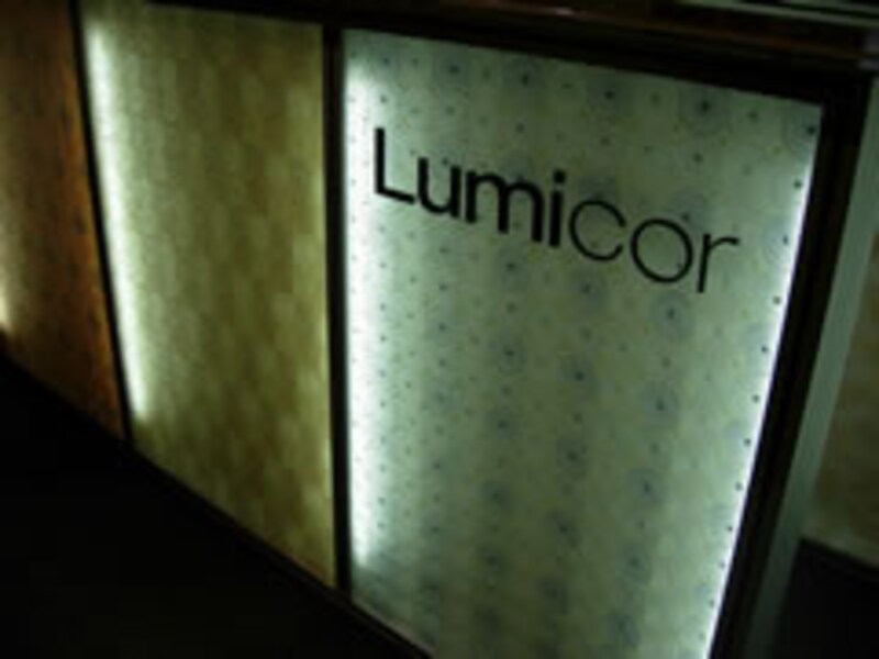 Lumicorはアクリル樹脂で天然素材の葉や草そして繊維や織物などを閉じ込めた非常に美しいインテリア素材だ。残念ながら不燃材ではないのでキッチン空間への利用は難しいが、バックライトに浮かび上がる木の葉模様など幻想的な空間を作る楽しみのある素材だ。