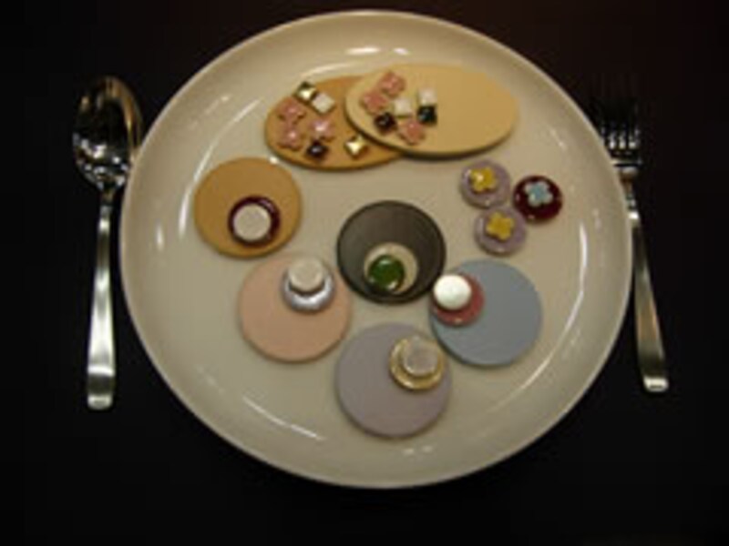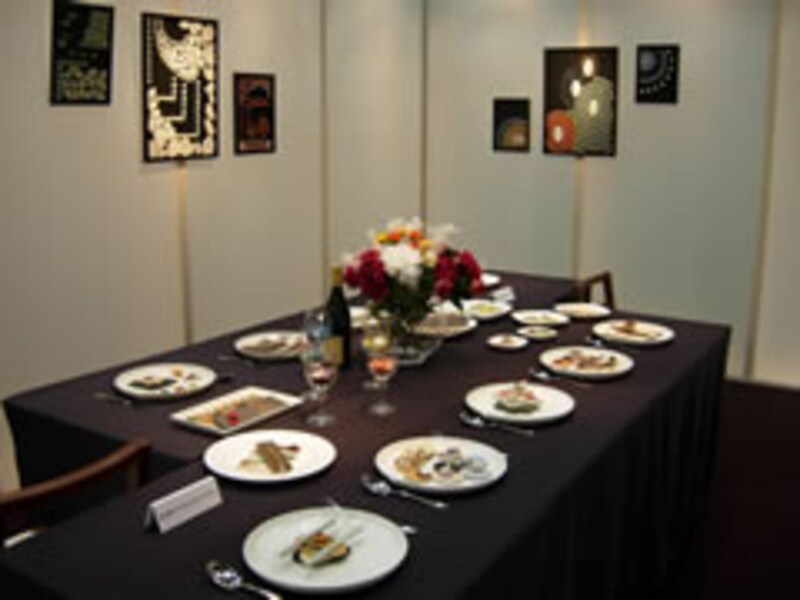 そうなんです!テーブルにセットされた20皿以上のお皿に飾られているのは見た目も鮮やかな料理に見えますが、残念ながら食べることはできません。全てモザイクタイルで創られた料理の数々・・・見事な包丁さばきに感動しました。他にもカナダのWood PavilionにはMERIT KITCHEN が小さなブースで出展していました。