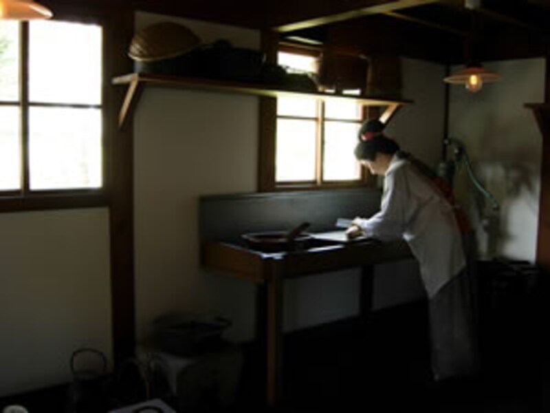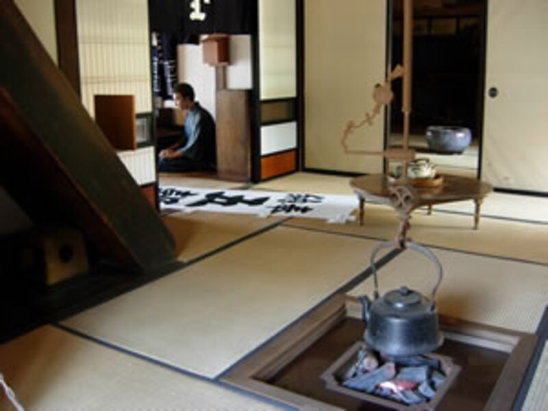 通りに面して立派な店構えがあり、そこが商売の場となっている。囲炉裏のある畳敷きの部屋に続いて板の間の台所がある。