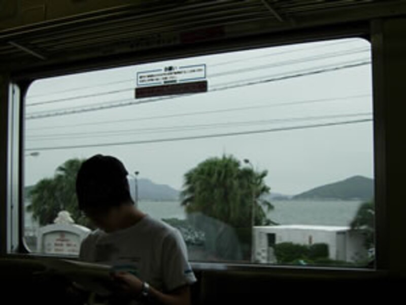 姪浜を過ぎてしばらくすると、それまでビルやマンションの谷間だったのが農村地帯に風景が一変します、玄界灘に続く博多湾を右手に見ながら唐津に向かいます。唐津が近づくと右手は唐津湾。 台形の珍しい形の高島を過ぎると唐津城が遠望できます。