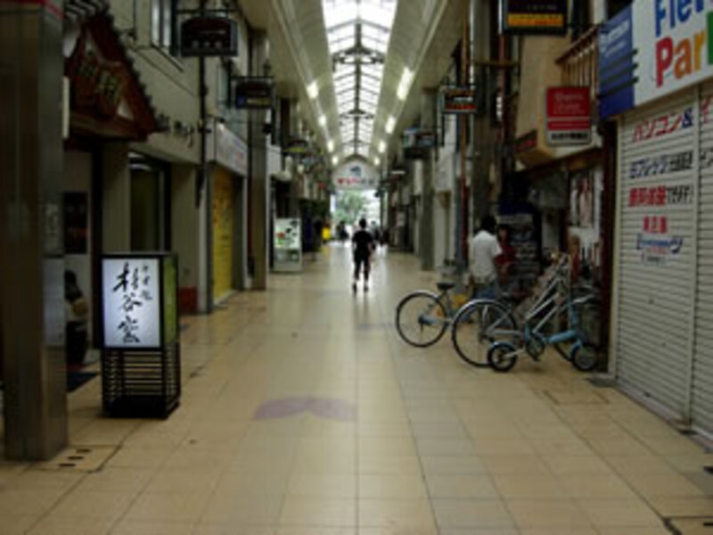170メートルあるアーケードの呉服町商店街が北口駅前から伸びる。