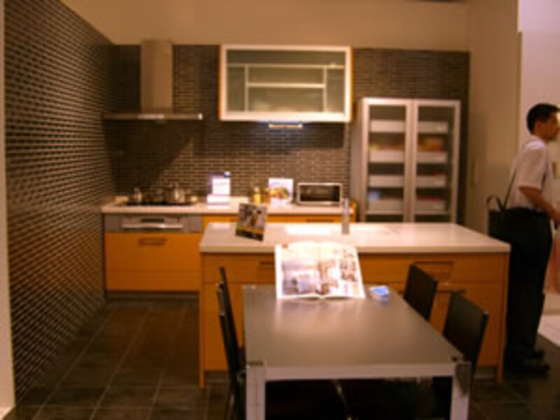 システムキッチンと合わせて、得意分野でもある内装タイルの最新版を確認することができる。このショールームでは床材も壁材もすべてがタイル仕様となっている点もINAXショールームの特徴だ。