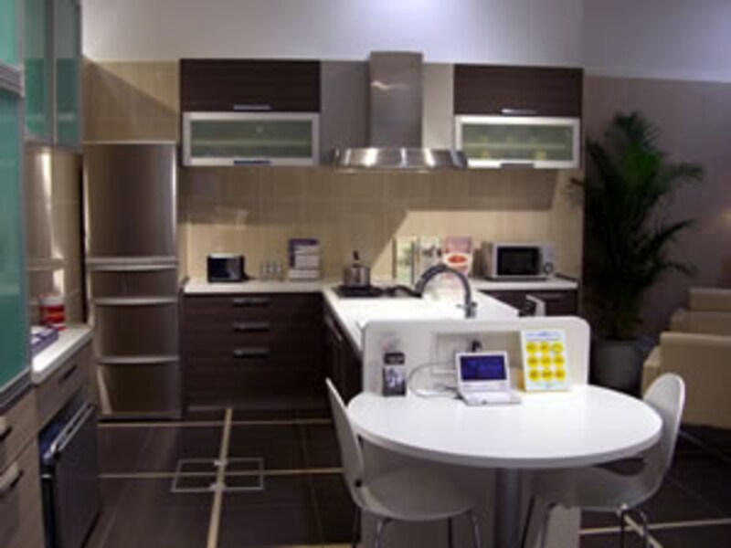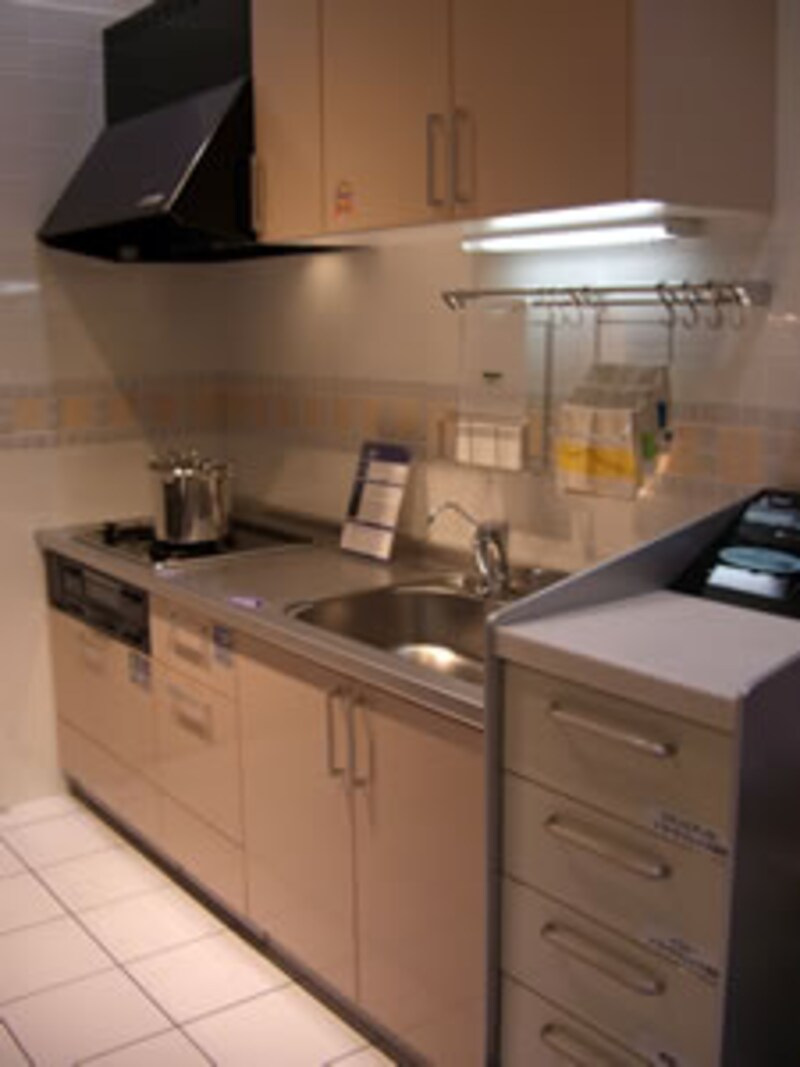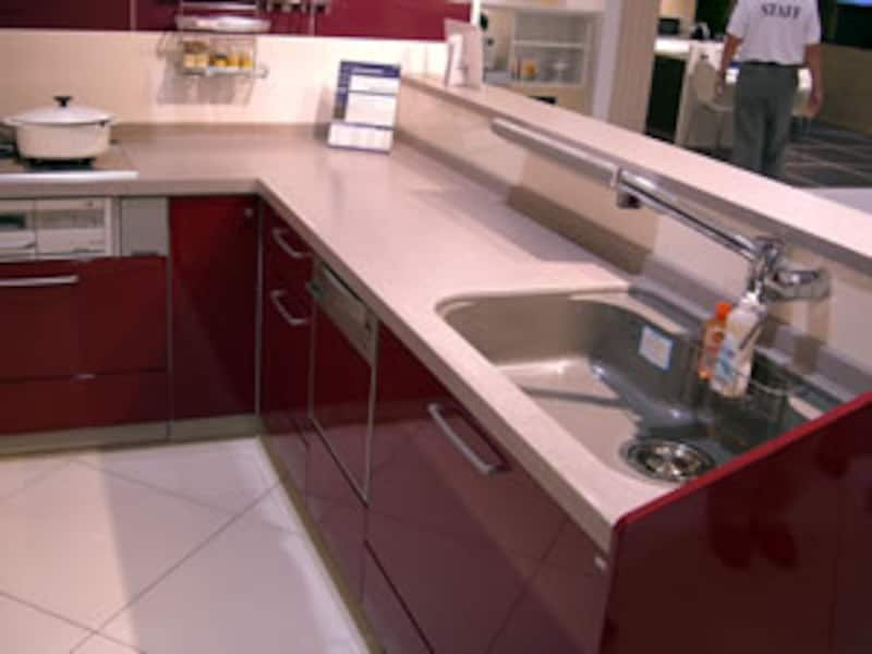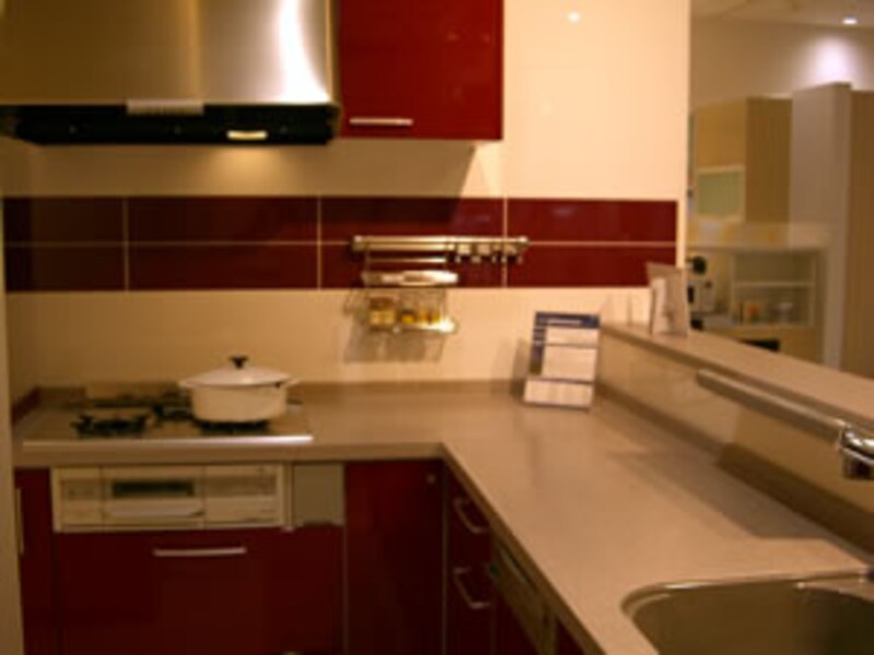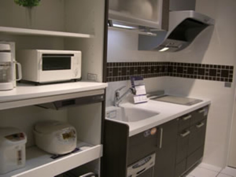リフォームユーザーの中には、家族構成が変わって従来のキッチンからもっとコンパクトなキッチンを要求される方も多いそうだ。このレイアウトはコンパクトながらフルスペックの構成となっている。