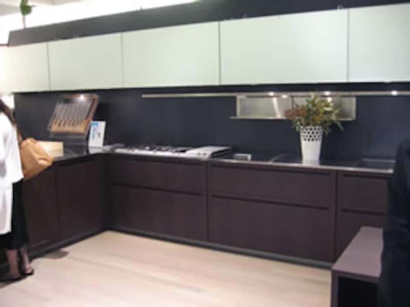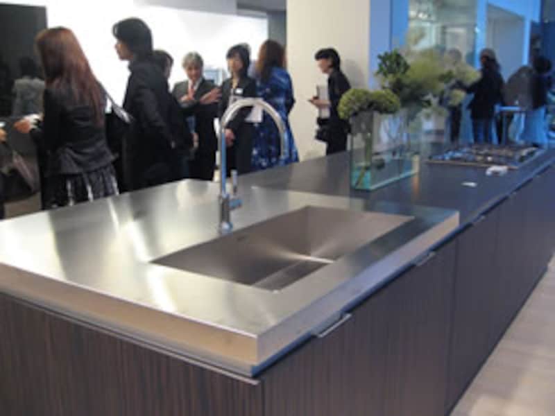 感心したのは、このシンク一体型のステンレストップもBOFFI本社での制作にもかかわらず、日本スタイルのゴミ収納付き排水口を採用したシンクになっていることです。ようやく海外メーカーも日本市場の独自性に目を向けはじめたということでしょう。