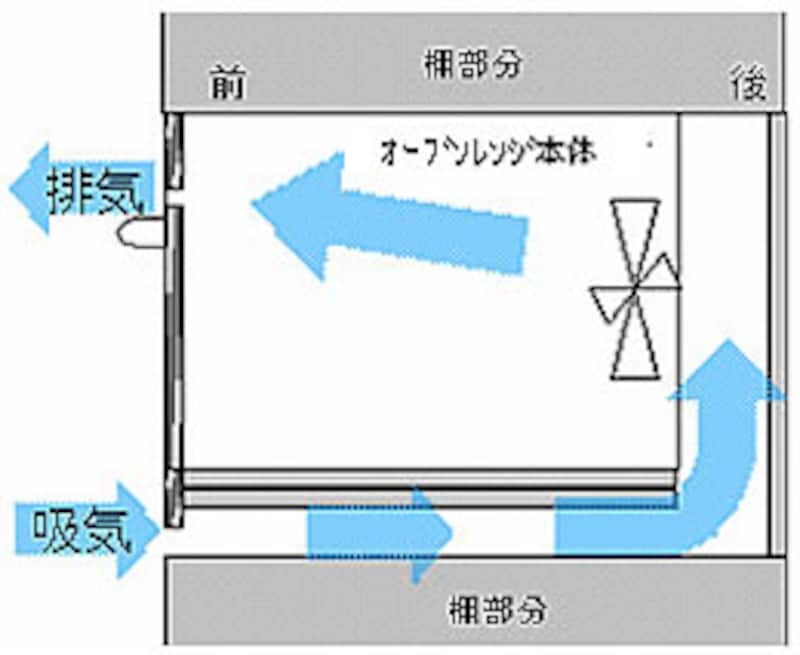 もうひとつの大きな特徴が、完全ビルトインが可能な「フロント給排気システム」を採用していることです。トールユニットや壁面の中に組込み、使う方の身長に合わせた高さにビルトインできる訳ですからユニバーサルデザインの観点からも大きな魅力を持ったオーブンレンジといえます。