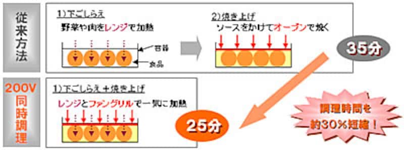 また、レンジとファングリルの組み合わせなどで調理時間を大幅に短縮することが可能です。