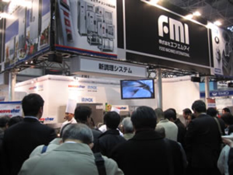 ハイセンスな業務用キッチン機器の輸入で知られるエフエムアイのIRINOX急速冷却・冷凍システムとスチームコンベクションオーブンCONVOSTARを組み合わせた新調理システムは黒山の人だかり。
