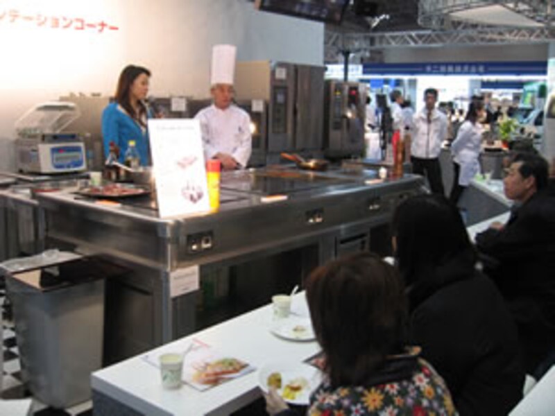 フジマックではスピード調理のできる「ジェットオーブン」を使った調理実演を交えてアッピール。