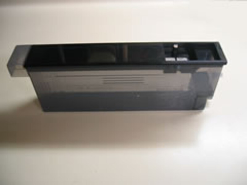水タンクを抜き取ったところ。水は約950ml.を入れることができる。右側がフィルターのついた水の注ぎ口。調理の都度水を補給したりセットしたりはヘルシオ本体右部分にあるデジタル表示で指示が出る。
