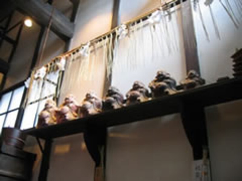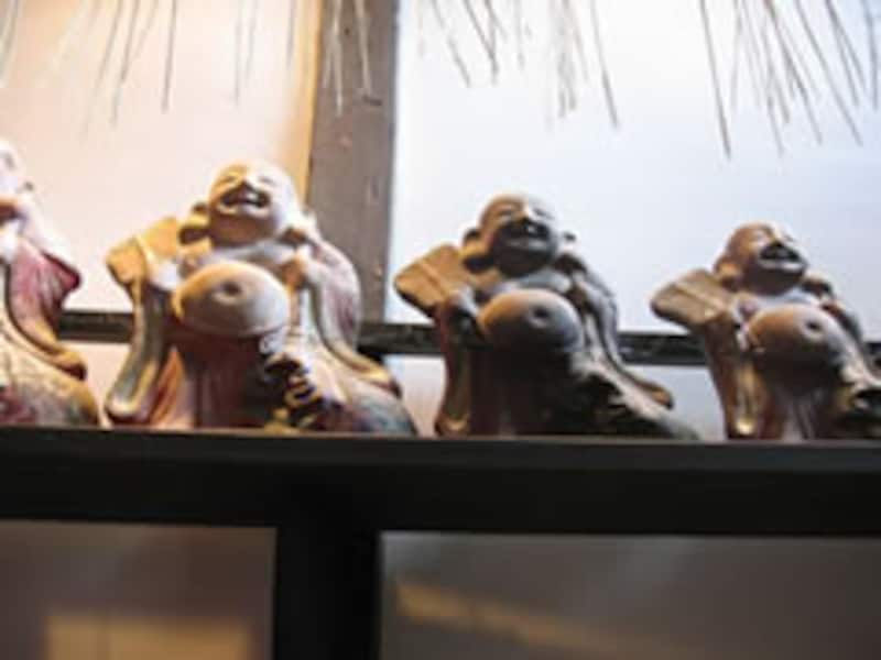 竈の上の棚には、七福神ならぬ7人の布袋さんがずらりと並ぶ。