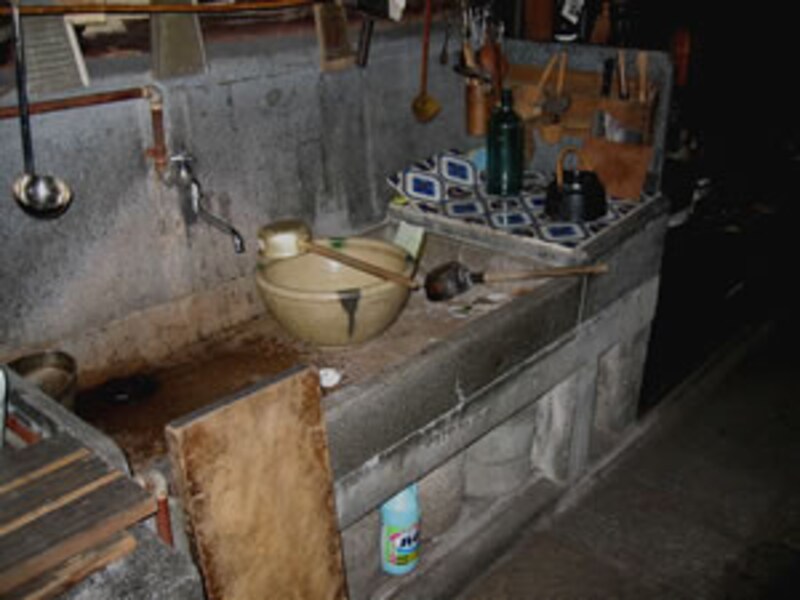 井戸はもう使われていないので水道はあるが、給湯器がないためこの台所での水仕事は現代人には信じられないくらい厳しいものがあるという。京の町家の生活を実感するには、この薄暗い空間にさし込む一条の明かりが創る陰影を楽しむ心と、足元からじんじんと冷え込む京の冬の厳しさを味わう必要がある様だ。