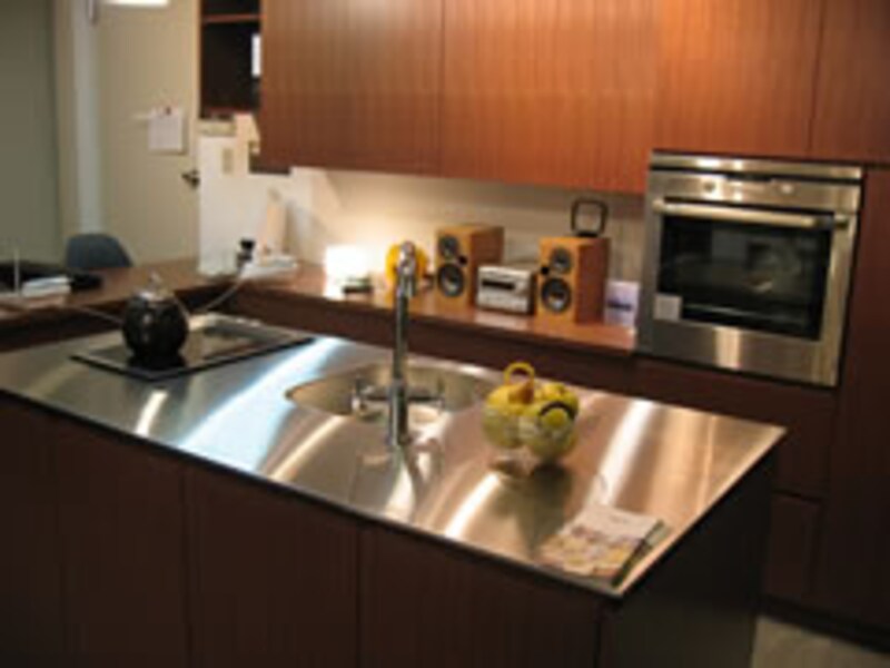 Type-02をキッチン側から見たところ。シンク側の有効間口が1115mmでクックトップ側の有効間口は1215mm。コンパクトなキッチンだが日本の住空間に応用しやすいレイアウトサイズといえる。(C)Oct. 2005 Copyright HIDEWO KURODA KITCHEN SYSTEM LABO.INC.