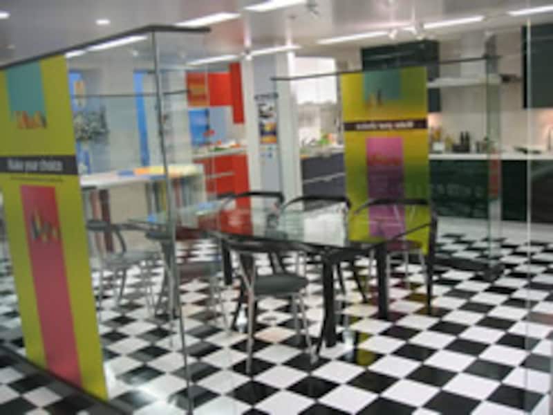 ショールームは約200平方メートルのスペースに、10セットのシステムキッチンと3セットの洗面化粧台、プレゼンテーションスペースなどがレイアウトされています。デベロッパー向け商品のため定価設定はしていないそうですが、なかなか優れたデザインと品質の商品が,かなり驚きの価格で提供できるようです。
