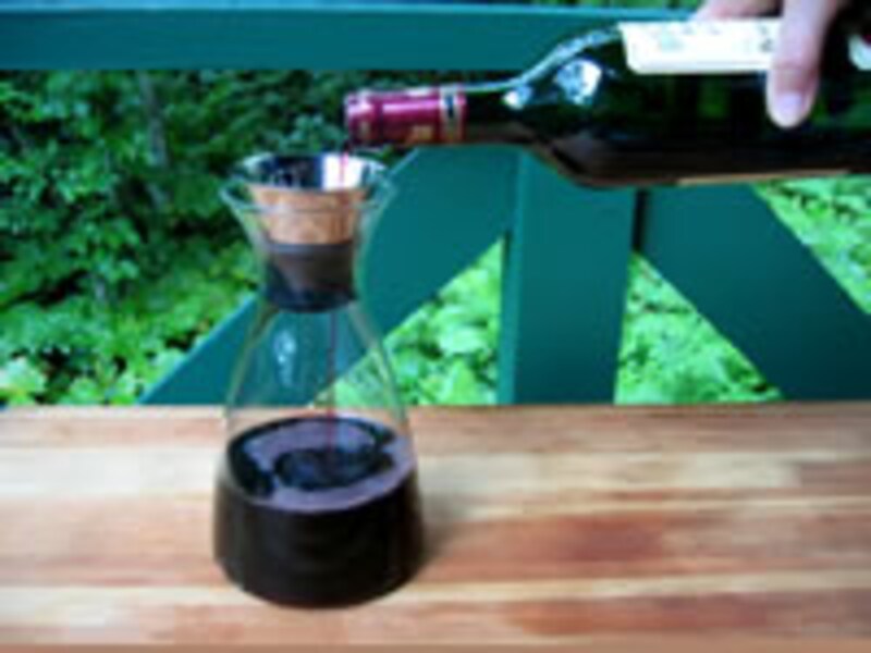 | ワインの保存状態と銘柄によってデキャンティングの時間は微妙に違いますが、手頃な価格の赤ワインでもデキャンティングすることによって微妙な味の変化を楽しむことができます。カラフェも注ぎ口はダブル構造となっていて液ダレしないのが嬉しい点です。 | ||