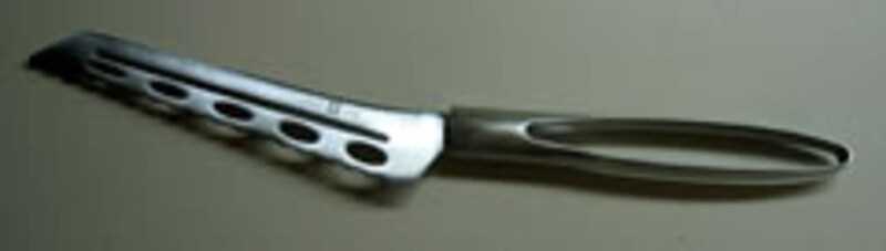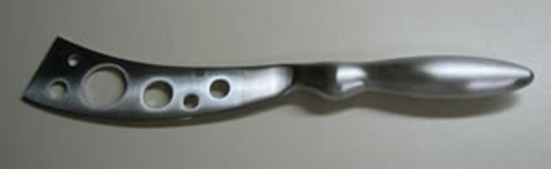 | TwinCollectionのこのチーズナイフも優れたデザインが目を引きつける製品です。人間工学に基づいた握りやすいハンドルは秀逸です。刃の部分にはチーズを思わせる穴があけられ,カットしたチーズがくっつきにくくなっています。ハードタイプからソフトタイプまで色々なチーズを切るのに適しています。 | ||
