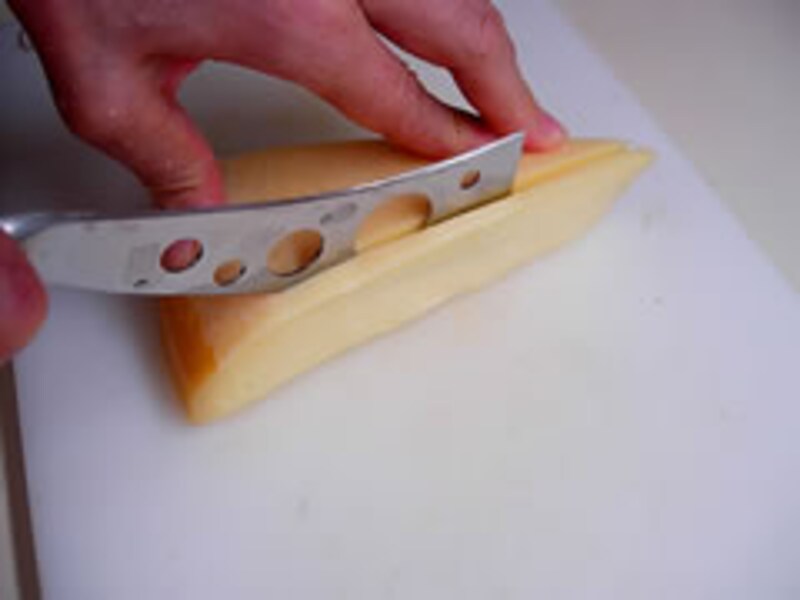| 18-10ステンレス製のこのチーズスライサーは、セミハードタイプのチーズを手早くスライスするのに向いています。 | ||