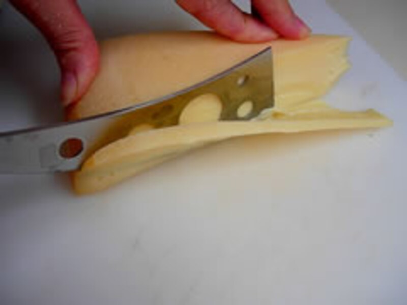 | 18-10ステンレスの波刃のナイフは、ゴルゴンゾーラチーズやセミハードチーズばかりでなく人参やかまぼこもきれいに切ることができます。 | ||