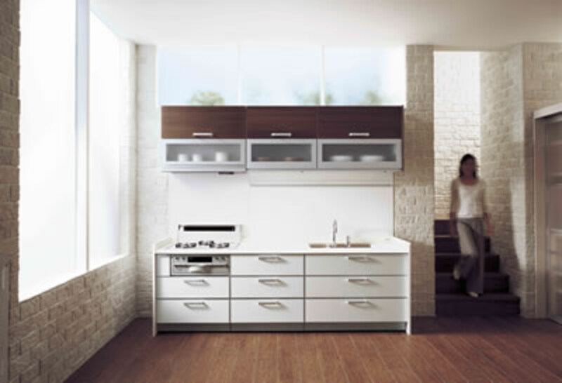 | 新しいCUISIAシリーズ「美しいキッチン」のコンセプトを表現するため、横の分割線に心配りが行き届いたフェースデザインが心地よい。 この組み合わせがスタイリッシュプラン標準で750+750+1050=Toatl2550mm。扉の材質とデザインで税込み1,209,075円~1,649,865円までのバリエーションがある。 |