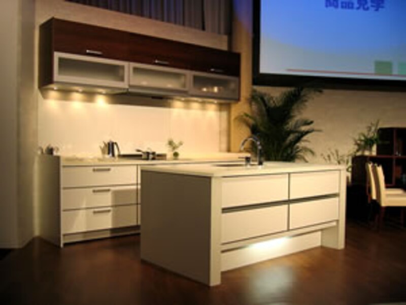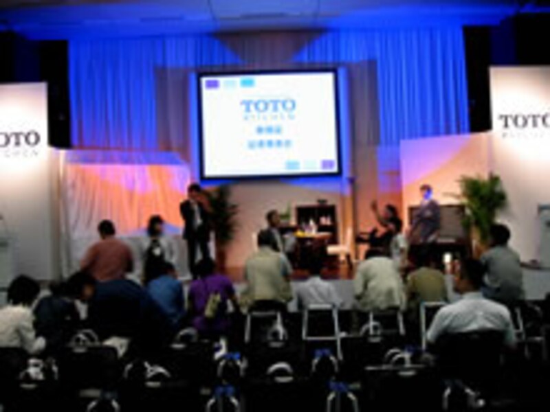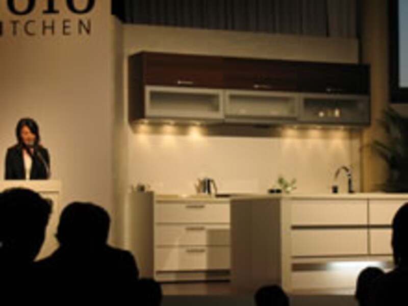 7月8日(金曜日)六本木ヒルズ・タワーホール会場において「TOTO KITCHEN 新商品記者発表会」が開催されました。発表されたキッチンは「インテリアと融和するキッチン」で、キャッチコピーは“美しいひと。美しいキッチン」。 |