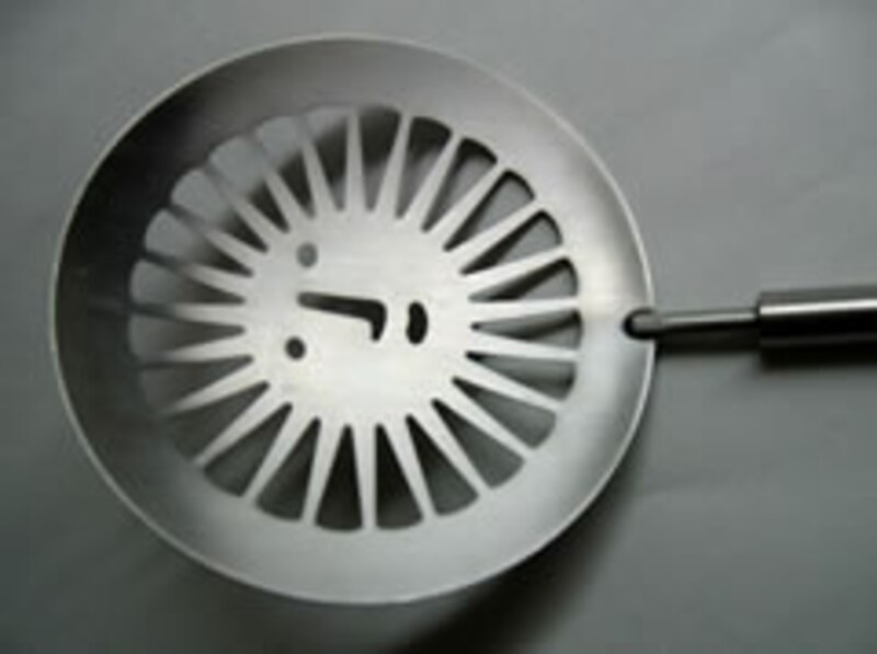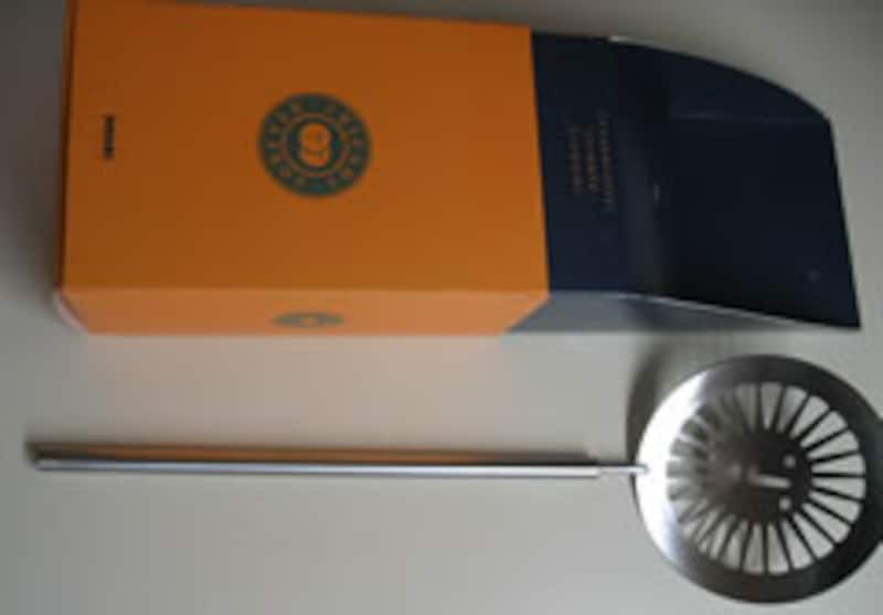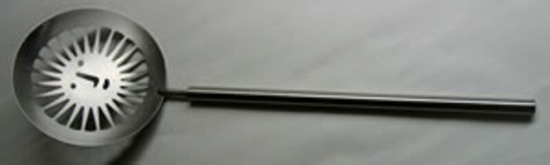 | プレゼントに選び出すのが難しい50近いキッチンアイテムの中で、まずおすすめなのがこのSKIMMER(スキマー)。スキマーというのは上皮をすくう道具・すなわち網じゃくしのことですが、微笑む太陽を思わせるデザインとしっかりとしたステンレスの作りはさすがドイツ製と納得できます。(余談ですがスキムミルクは、クリームをすくいとった牛乳・すなわち「脱脂乳」のことです) キッチン作業の中で意外と出番の多いのがこのスキマーだと思います。 | ||||||||||||