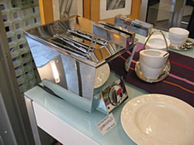 | デザイン家電の特集に必ず登場するのがこのトースター。レトロ感覚の左のWサンドトースター「ルーカス」(¥10,290税込)はトーストを挟んで焼く、右はシャープな造形のキューブトースターサンド「LUCA」(¥14,700税込)。 | ||