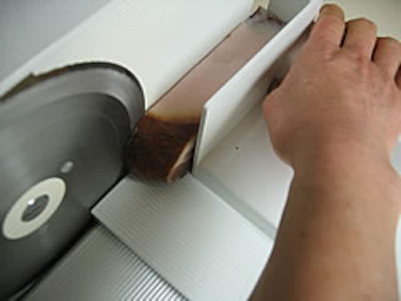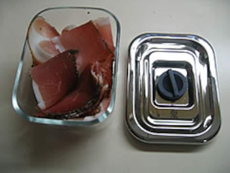 | 塊の生ハムやベーコンをスライサーでスライスしトップサーブに保存すれば1週間程度は美味しく保存でき、また手軽に使えます。 | ||